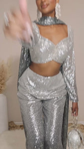 Make a statement without saying a word. Introducing the first look from our “She is the Moment” collection — a high-impact, ombré sequin dream in quartz grey. Featuring flared bell bottoms, a full-sleeve ruched crop top, and a lightweight dupatta, this set is crafted to catch the light and command the room. Perfect for reception nights, sangeets, or when you just want to own the moment.